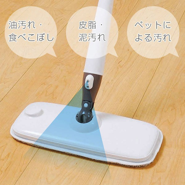 床の拭き掃除に大活躍する、スプレー機能を搭載したフロアモップです。水や洗浄液をミスト噴射できるので、バケツを出す手間も雑巾を絞る手間も不要です。面倒な拭き掃除をコレ一本で解決します。
