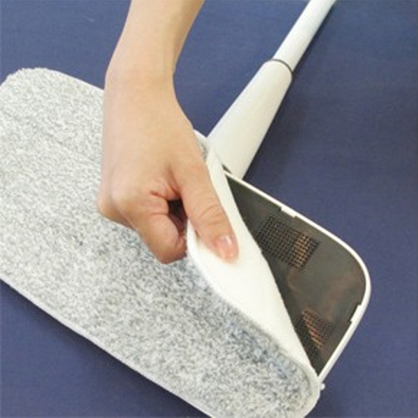 専用モップは、洗って繰り返し使えるので経済的です。別売りでスペアもございますので、劣化したら交換することもできます。面ファスナー式で簡単に着脱できます。