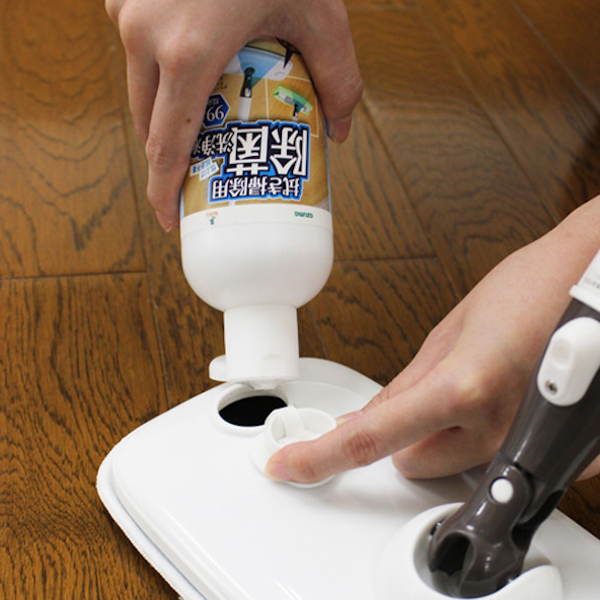 別売りで除菌洗浄液もございます。泡立ちが無くさらっとした拭き後で、二度拭き不要です。床以外にも、ドアノブや家具・電化製品の除菌・洗浄にも使用でき万能です。