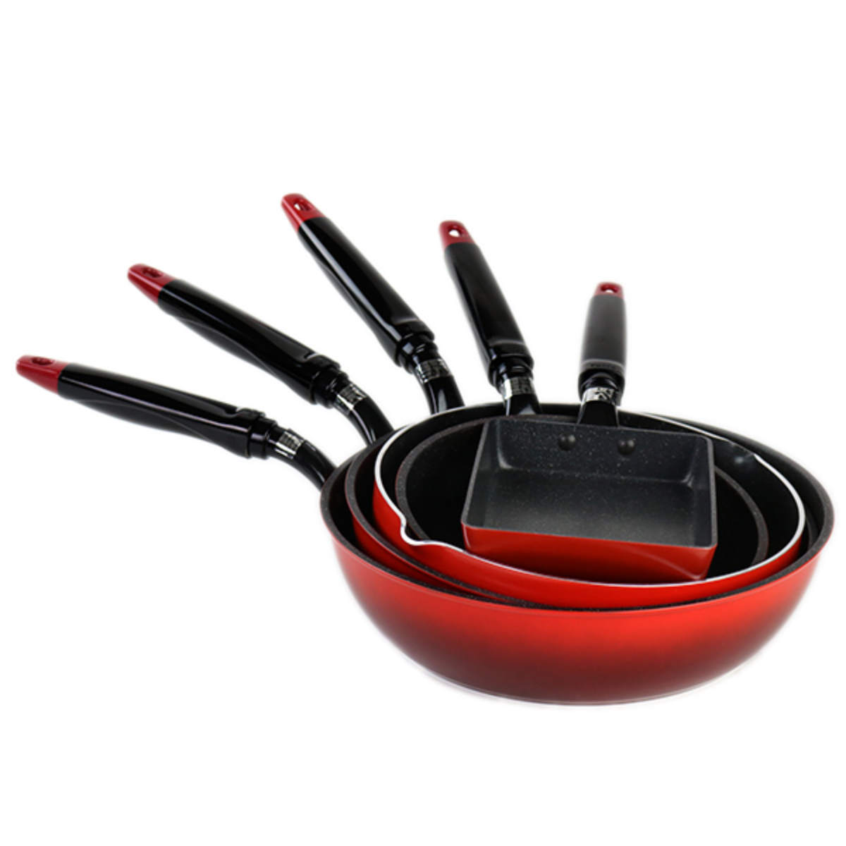 小さなフライパンから一般的なサイズのフライパン・深型フライパン・卵焼き器等さまざまな形状のフライパンがあるので、全部揃えるのもオススメです。また、落ち着いた赤色で使いやすい商品なので、セットで贈り物にも最適です。