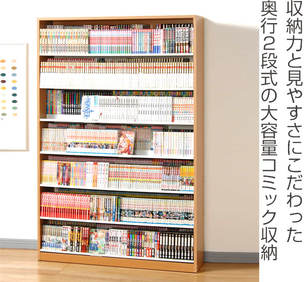 収納力抜群のコミックラックでお部屋もすっきりきれいに片付く♪ぱっと一目でタイトルが分かるので、取り出しやすい。