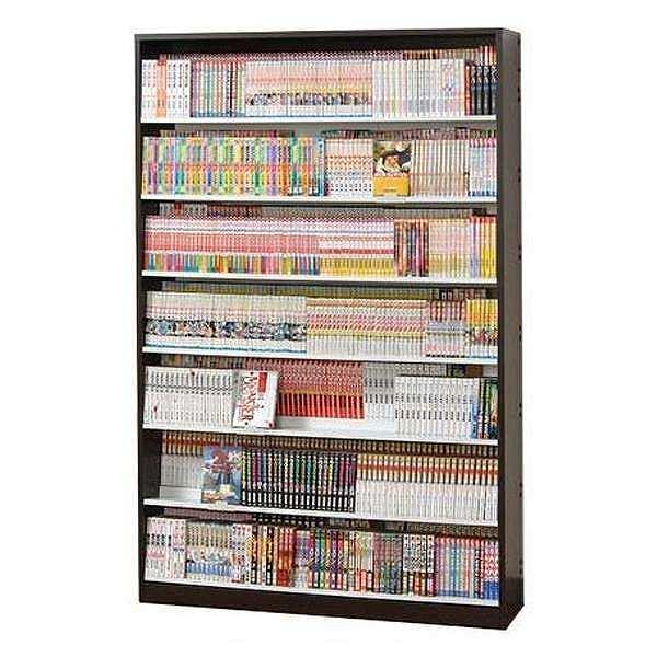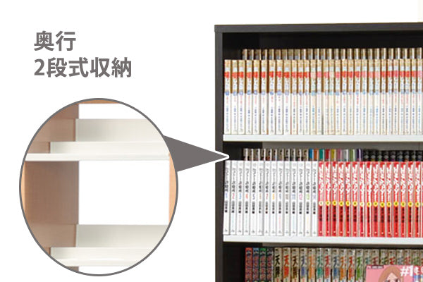 段差があるので、奥側のタイトルが見やすいです。下段にいくほど棚が傾斜し、背表紙がわずかに上を向く構造になっています。