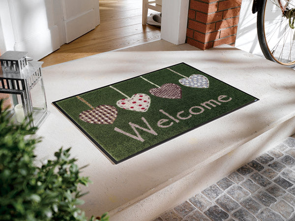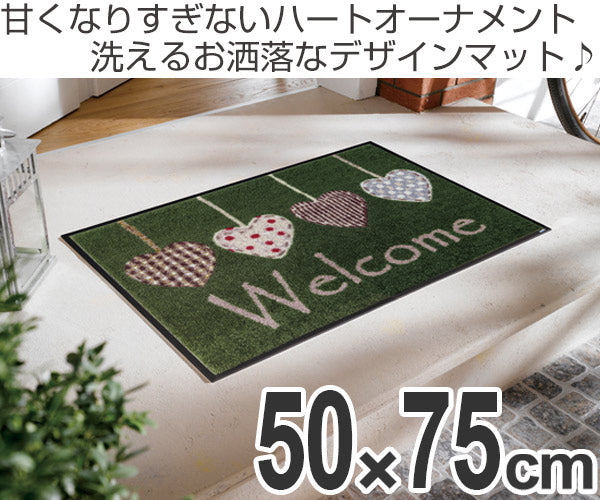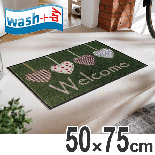 玄関マット wash+dry ウォッシュアンドドライ Cottage Hearts モスグリーン 50×75cm