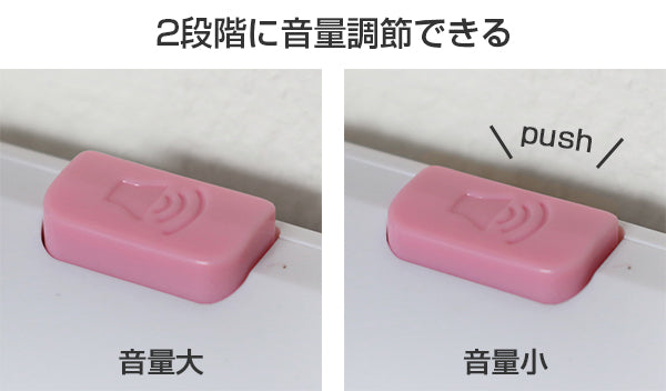 ●2段階の音量切替ボタン付きです。(最大音量約80dB)