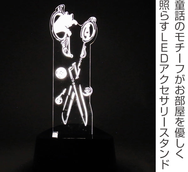 LEDライト付きのアクセサリースタンドです。音感センサーが内蔵されているので、手を叩いた振動などで1分間点灯します。童話をモチーフにしたシリーズです。大切な人へのプレゼントに最適です。お伽話のキーアイテムが幻想的にお部屋を照らします。