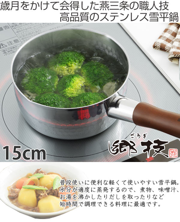 片手鍋 郷技 ステンレス雪平鍋 15cm IH対応