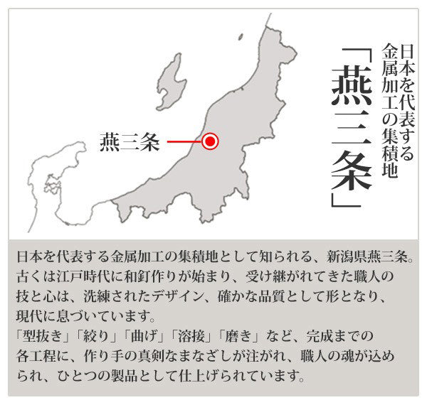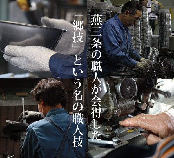 新潟県燕三条地区の金属加工技術は日本が世界に誇れる技術として、高く評価されています。その燕三条の職人技「郷技(ごうぎ)」を駆使し、ステンレス製雪平鍋を完成させました。新潟県央地区に伝わる方言「ごうぎ」は、「とても」「すごく」という意味で、職人たちの想いを名前に込めています。ぜひ、手にとって品質のよさを感じてください。
