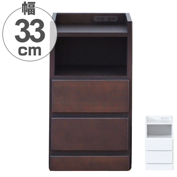 すき間収納 サイドチェスト 3段 木製 コンセント付 32.5cm