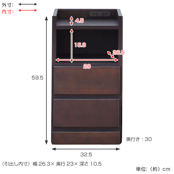 | サイズ | 約 幅32.5×奥行30×高さ59.5(cm) 引出し内寸:約 幅26.3×奥行23×高さ10.5(cm) |