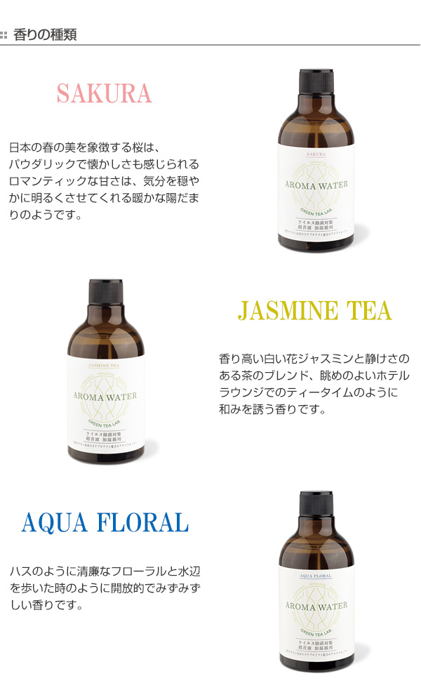 | 種類 | Sakura、JasmineTea、AquaFloral、AppleCamomile、Lavender、FloralSoap、Hinoki、Yuzu、Champagne |