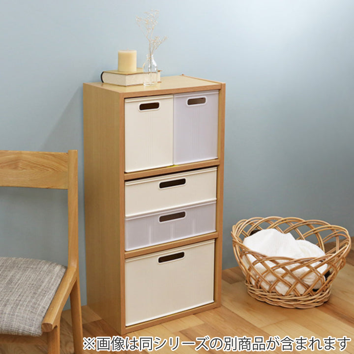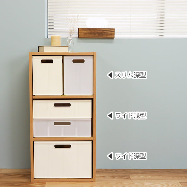 カラーボックスに収まるサイズのインナーボックスです。カラーボックスの中をアイテムごとに分けて収納できるので、スッキリ片付きます。『スリム深型』はカラーボックス1段に2個収納可能です。