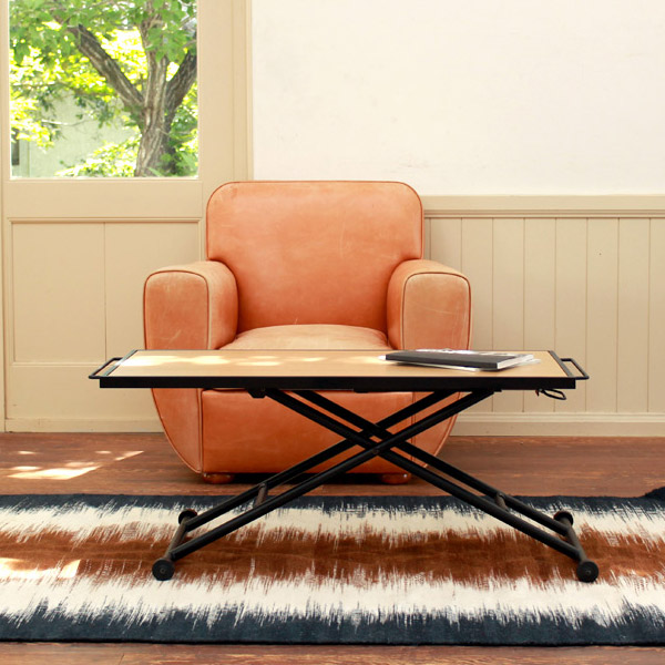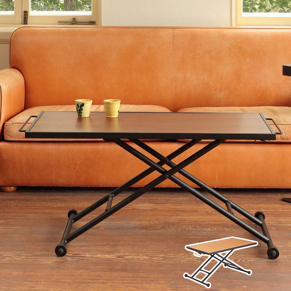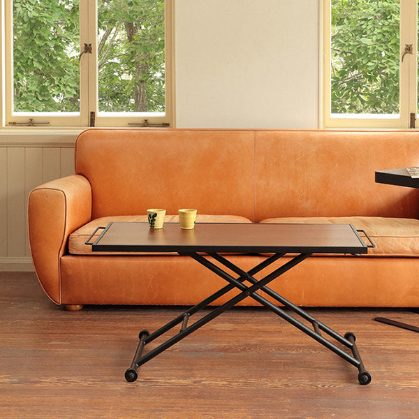 昇降機能が備わっており、高さの調節が可能です。ローソファ・ローチェアや通常のソファなど、お好みでご使用いただけます。