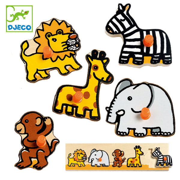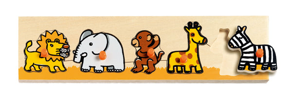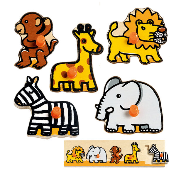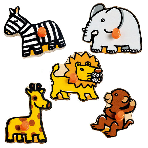 小さなお子様の手でも持ちやすい動物の木製パズルです。