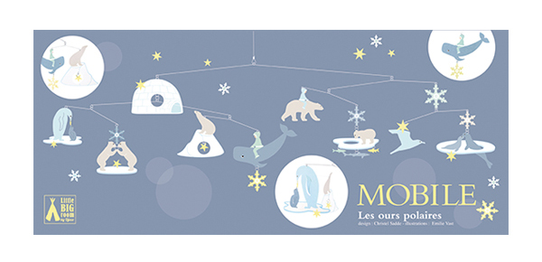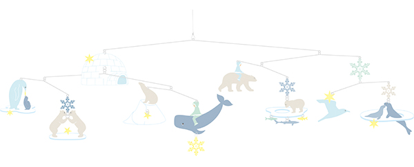 ●北極に住む可愛いシロクマなどの動物たちが楽しく遊んでいる様子のモビールです。