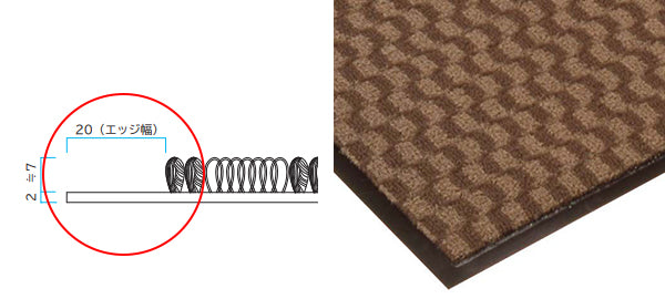パターンの異なるナイロンパイルが細かいゴミを取り除く屋内用マットです。高いデザイン性と耐久性を兼ね備えた、密度のあるループパイル形状になっています。