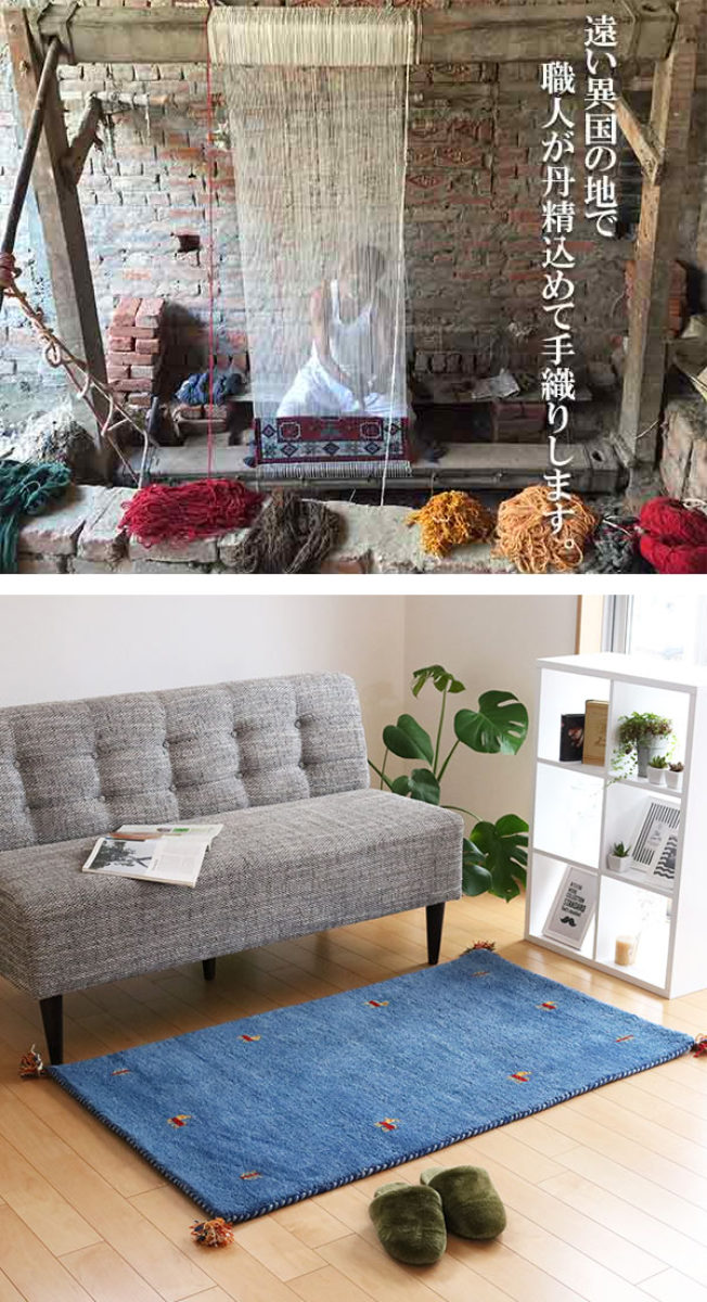 職人がひとつひとつ手織りした、手触りの良い上質なギャッベです。ギャッベはイランの砂漠の周辺に暮らす遊牧民族「カシュガイ族」の女性たちが、羊毛で織る草木染の絨毯。草木で染めた手紡ぎの羊毛(ウール)を使った素朴な色とデザインが魅力です。