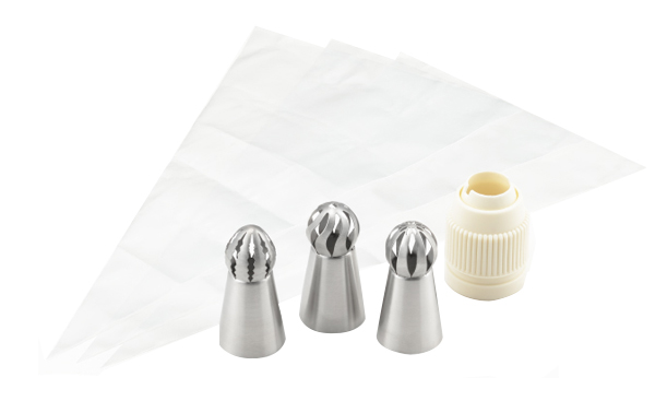 形状の違う口金3ピース・アダプター・絞り袋3個のセットです。