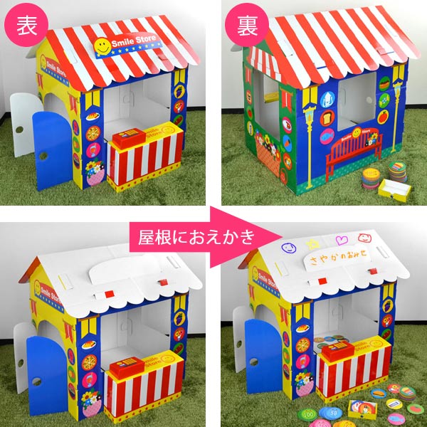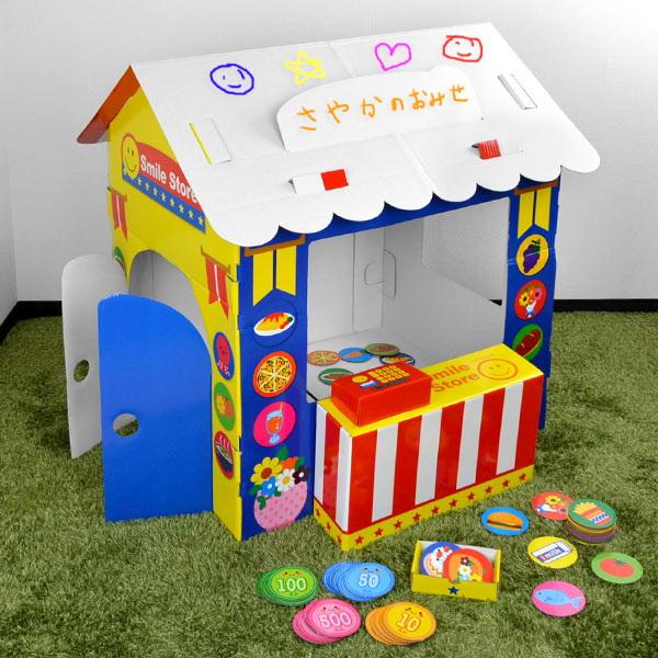 表も裏もカラフルなラミネート印刷♪かわいいお店屋さんで楽しくごっこ遊びができます!屋根は白地を表にして、おえかきもOK!自分のお店で店長さんになれる♪