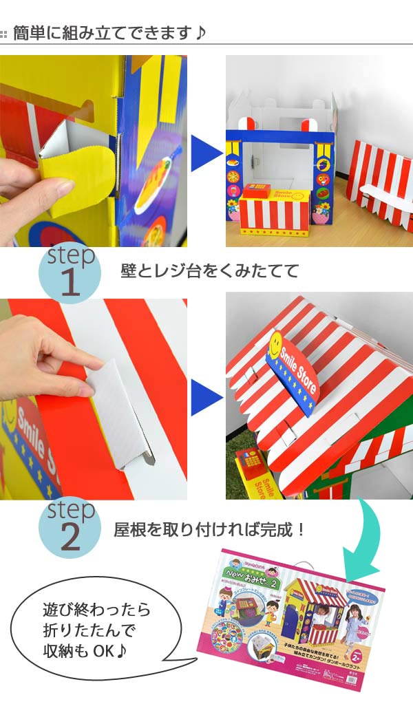 パーツを差し込んで組み立てていくだけで、お店が完成します!遊び終わったら、解体して収納OK!出しっぱなしにならないので、お部屋もせまくならず、すっきり片付きます。