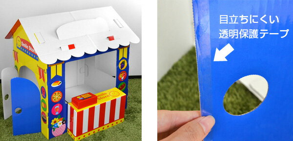 ハウスには底があるので、しっかり安定します。透明の目立ちにくい保護テープ付きで、お子さまが手をケガしないように配慮。安全に遊べます。