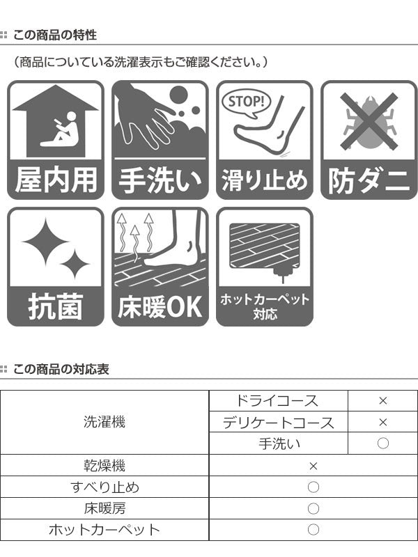 また、防ダニ加工や滑り止め加工が施されているので、お子様やご高齢の方にも安心してお使いいただけます。