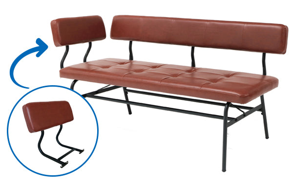 LDベンチのサイドには、別売りのアームレストが取り付けられます。左右どちらにも付け替え可能なので、インテリアの配置に合わせてご使用ください。