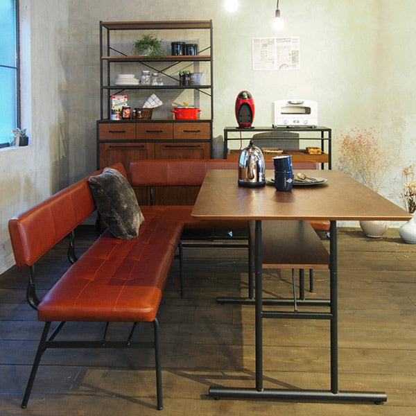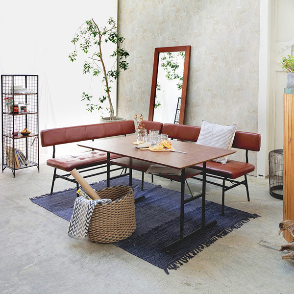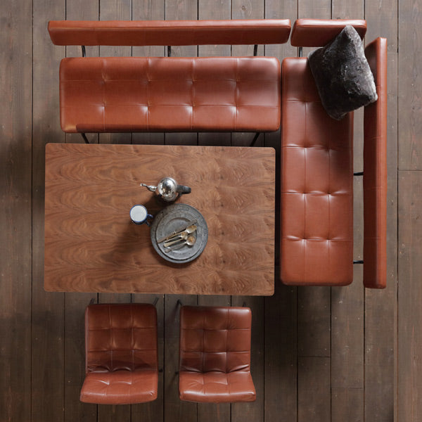 存在感のある赤茶色の合皮は使うほどに質感が増していくため、ヴィンテージ調のお部屋作りにはピッタリです。ブラックスチールとの組み合わせが絶妙なレトロ感を醸し出します。