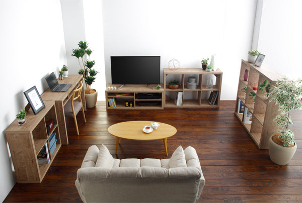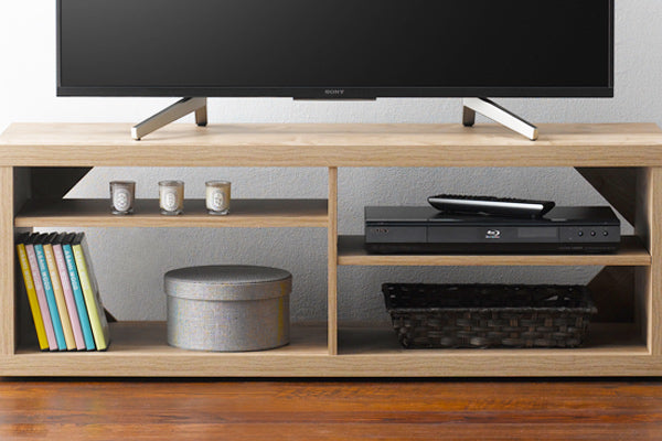 どんなお部屋にも合う色合いと、自然な木目がやわらかい印象になります。背面があいているので配線もゴチャつかずスッキリとします。背面化粧仕上げになっています。