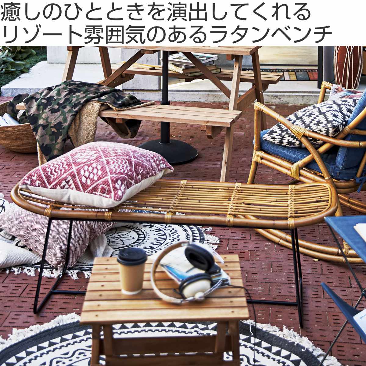 どんなインテリアにも合うラタンのベンチ