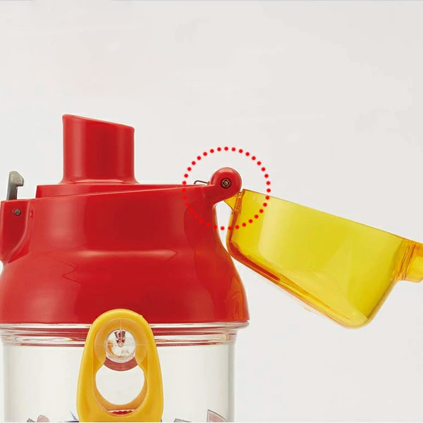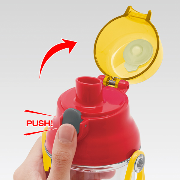 水筒のフタはボタンを押すだけで開けることができるワンタッチ式です。小さなお子様でも簡単に開けられます。