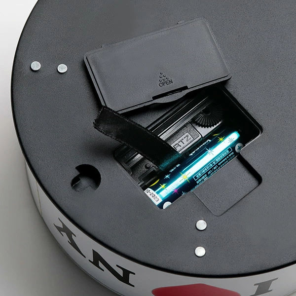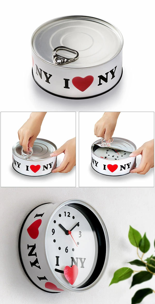 缶を開けるワクワク感が楽しめるユニークな掛け時計です。中にはゆらゆら揺れる可愛いハートの振り子付き、楽しい時を刻んでくれます。