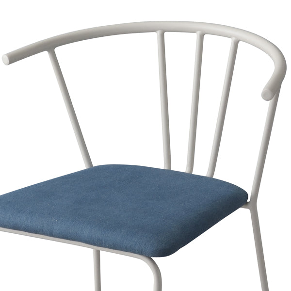 白いスチールの背もたれ 白いフレームと、デニム調生地の組み合わせは、どんな部屋にもマッチします。 |