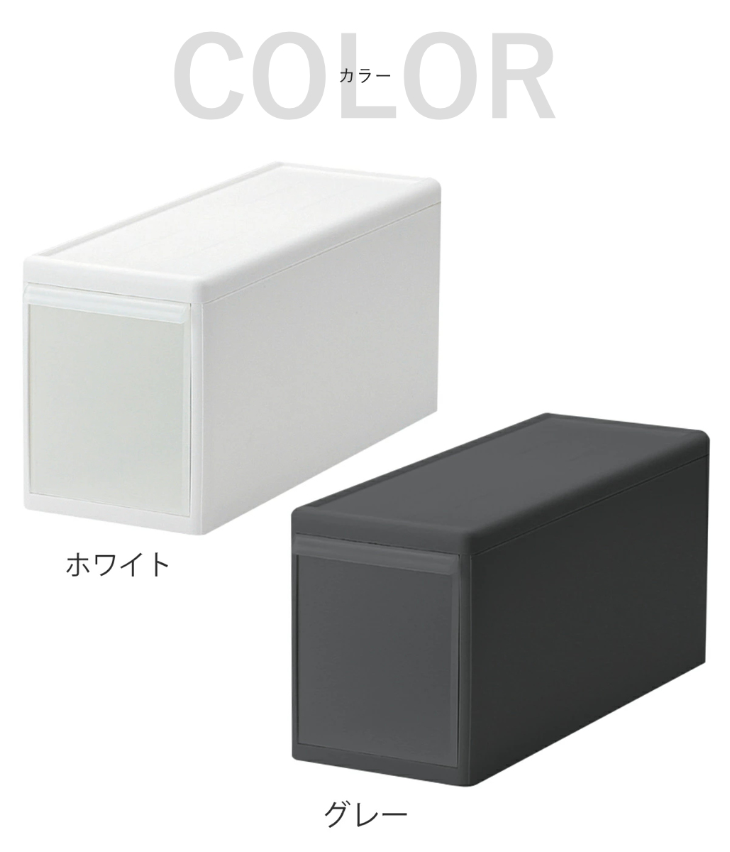 3種類の幅の異なる収納ケースでも積み重ねができるスタッキング構造で、自由にカスタマイズができます。無駄な空間を作らないブロック式構造なので、スッキリとした見た目です。MOSの収納ケースなら、スペースを有効活用したあなただけの「理想の収納」が作れます。