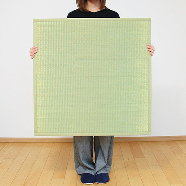 | 材質 | 表面:い草100% 床(とこ):発泡ポリエチレン、クラフト紙、PPフィルム(ビニール) 裏面:PPフィルム(ビニール) 縁布:ポリエステル すべり止め:アクリル樹脂 |