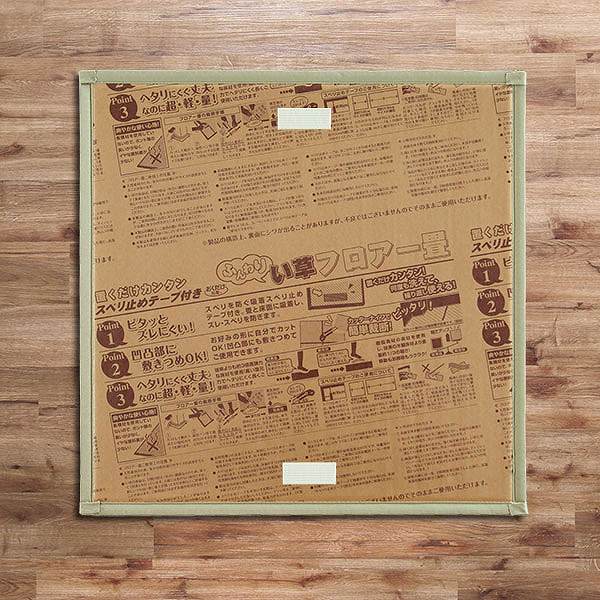 | 材質 | 表面:い草100% 床(とこ):発泡ポリエチレン、クラフト紙、PPフィルム(ビニール) 裏面:PPフィルム(ビニール) 縁布:ポリエステル すべり止め:アクリル樹脂 |