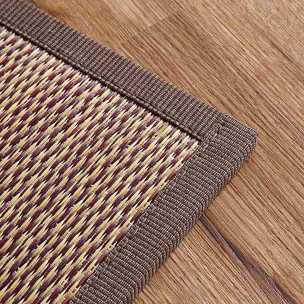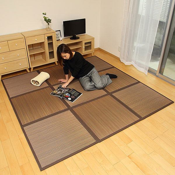 | 材質 | 表面:い草100% 床(とこ):発泡ポリエチレン、クラフト紙、PPフィルム(ビニール) 裏面:PPフィルム(ビニール) 縁布:綿 すべり止め:アクリル樹脂 |