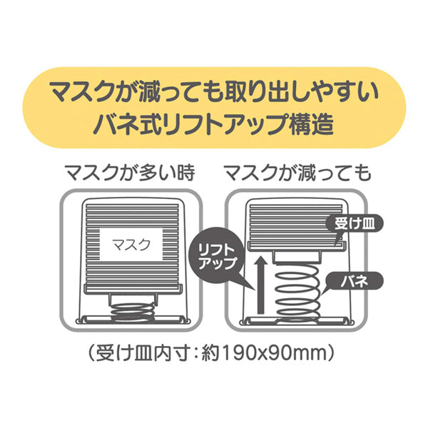 ●マスクが減っても取り出しやすい、バネ式リフトアップ構造です。