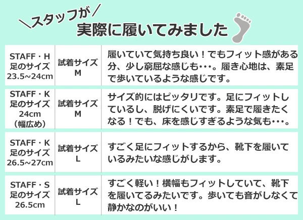 スリッパを履いたときのサイズ感について