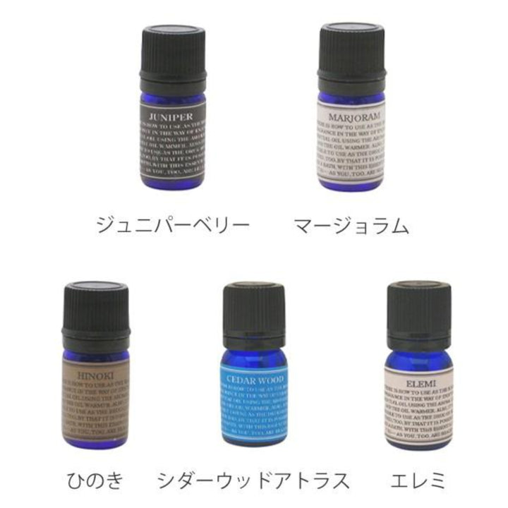 | 種類 | ジュニパーベリー、マージョラム、ひのき、シダーウッドアトラス、エレミ |