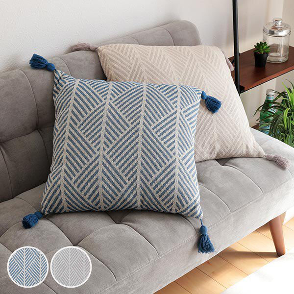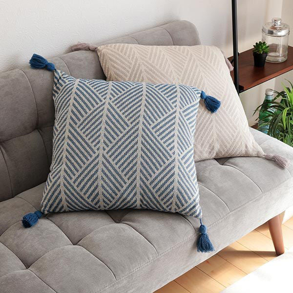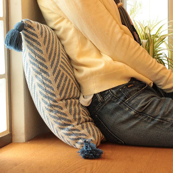 四隅に付いたタッセルがインテリアのアクセントになります。1つでも2つ並べてもオシャレです。