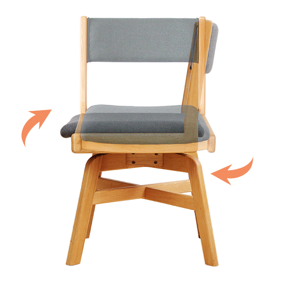 こちらのチェアは座面が360度回転式になっているため、椅子を引かずにスムーズな立ち座りを促します。少しの力で座面が回りますが、勝手な回転はしません。