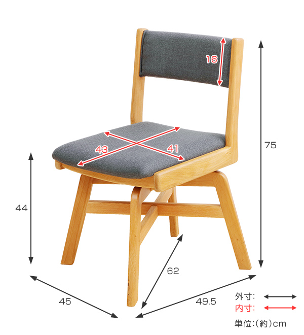 | サイズ | 約 幅45×奥行49.5×高さ75(座面高44)(cm) 重量:約7.6kg |