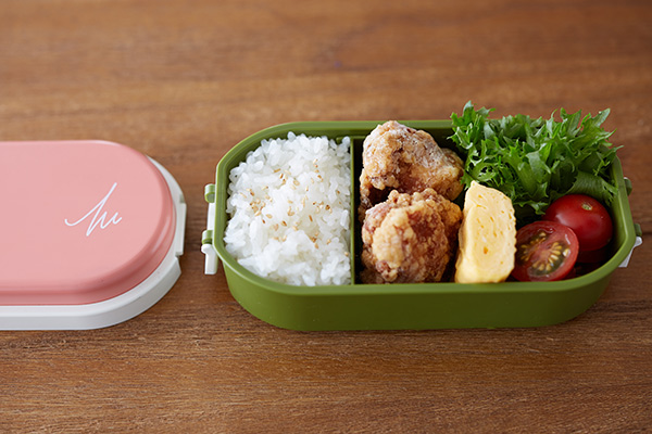 フタの内側をドームにるつことでボリュームある盛り付けを潰さずキープします。片手で持ちやすく、隅まで洗いやすい小判型です。容量900mlなので男性の方や食べ盛りのお子さまにおすすめのサイズです。仕切りは取り外し可能なので、メニューに合わせてお使いいただけます。保冷剤内臓のフタがお弁当全体を冷やしてくれるのでひんやり美味しく保ってくれます。