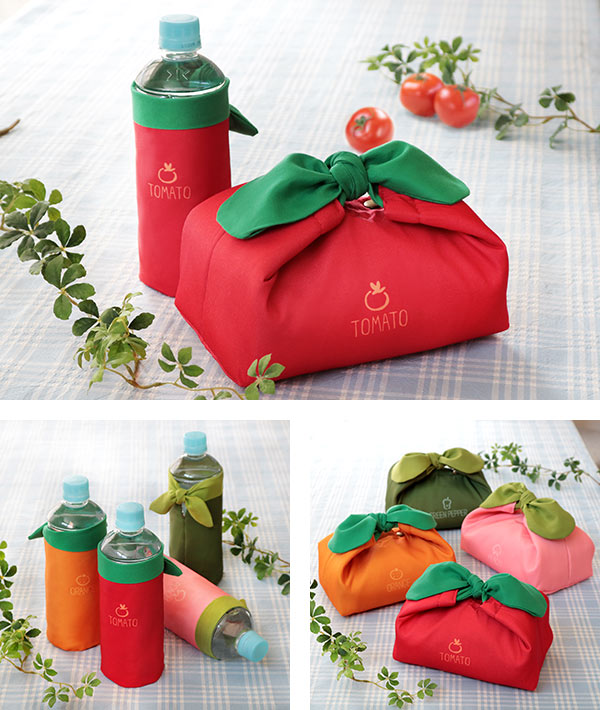 トマト・オレンジ・ピーマン・ピーチの4種類からお好きな色をお選びいただけます。同シリーズにお揃いで使えるランチ包みもあります。