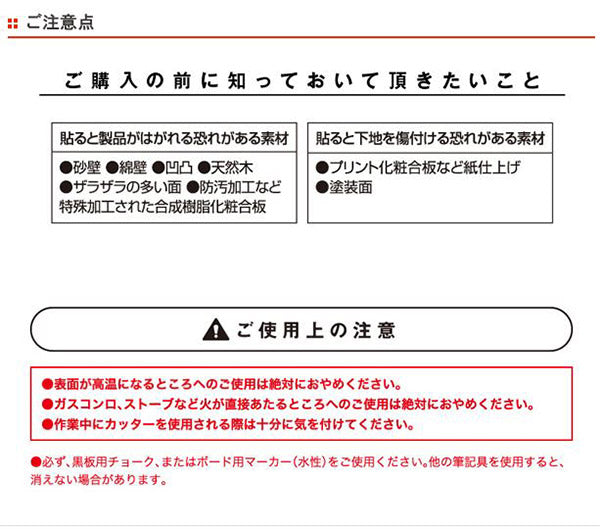 | 備考 | ※接着に向かない素材:砂壁、綿壁、凸凹の激しい面、ザラザラの多い面、防汚加工など合成樹脂化粧合板、プリント化粧合板など紙仕上げ、塗装面 |