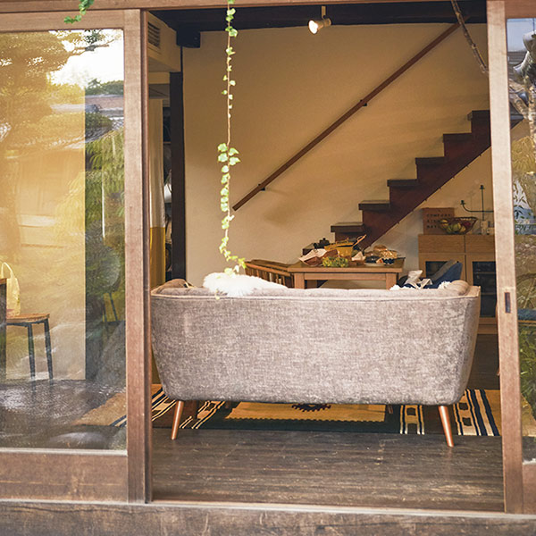木造のおうちにも合うファブリックと、ぬくもり感じる木製脚の組み合わせがほどよくマッチし、空間をやさしく彩ります。洋風のお部屋にもおすすめのナチュラルな風合いです。
