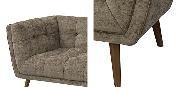 シックな木製脚 深みのあるブラウンは布地と相性抜群です。細身の脚なのですっきりとした印象になっています。 |