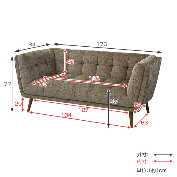 | サイズ | 約 幅176×奥行84×高さ77(座面高45)(cm) 重量:約34.5kg |