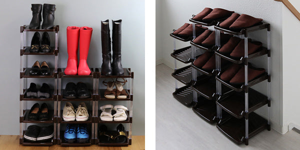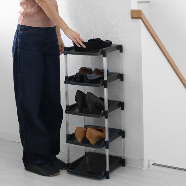幅約30cmの空間があれば最大5足分が収納できるスリムなタワー型なので、スッキリとした空間を作ることが出来ます。オープン収納なので圧迫感を感じることがありません。