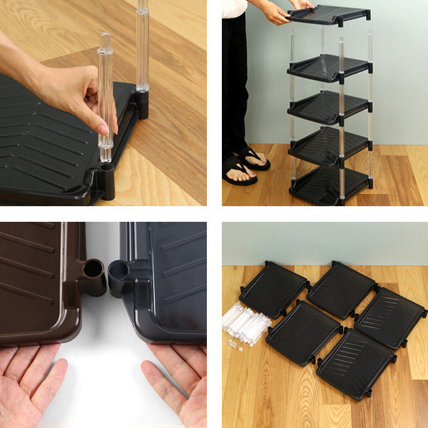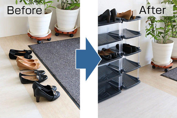 ※ご使用の際には下段より順に靴を収納してください。上段より収納しますと、安定感に欠ける場合がございます。また、転倒防止のため、ラックの下に市販の補助具(転倒防止板)等をご使用されることをおすすめします。